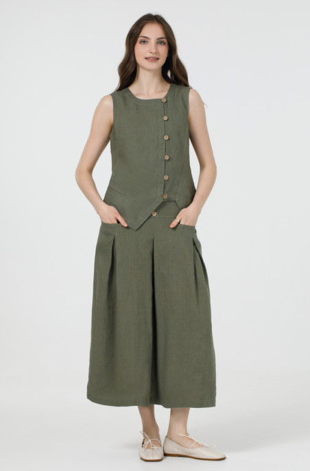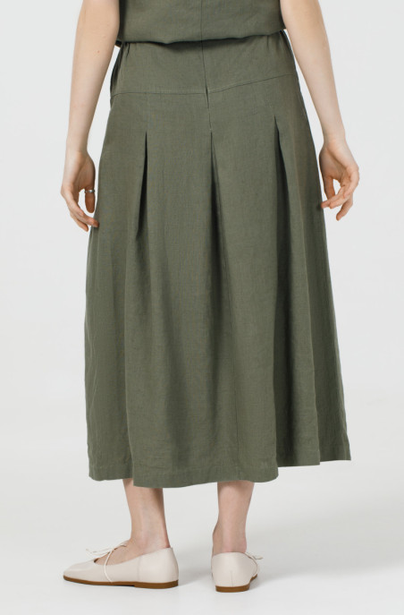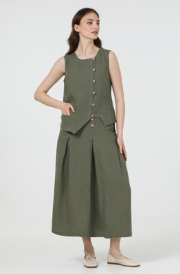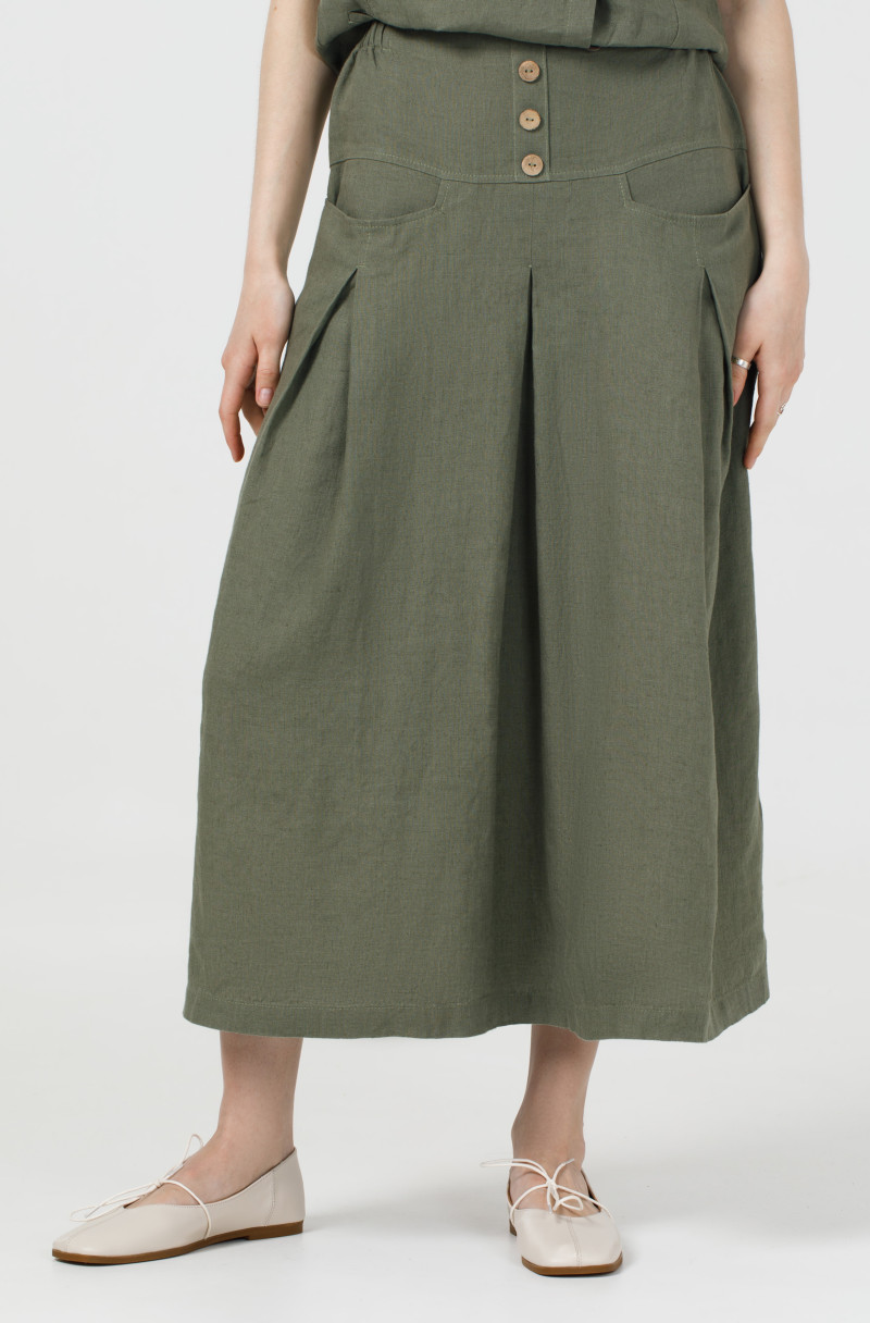Спідниця з лляної тканини з ефектом креш. Попереду спідниці розташовані кишені, на спинці – застібка-блискавка.