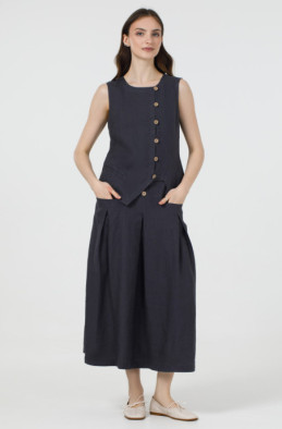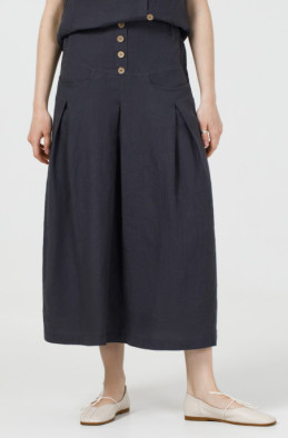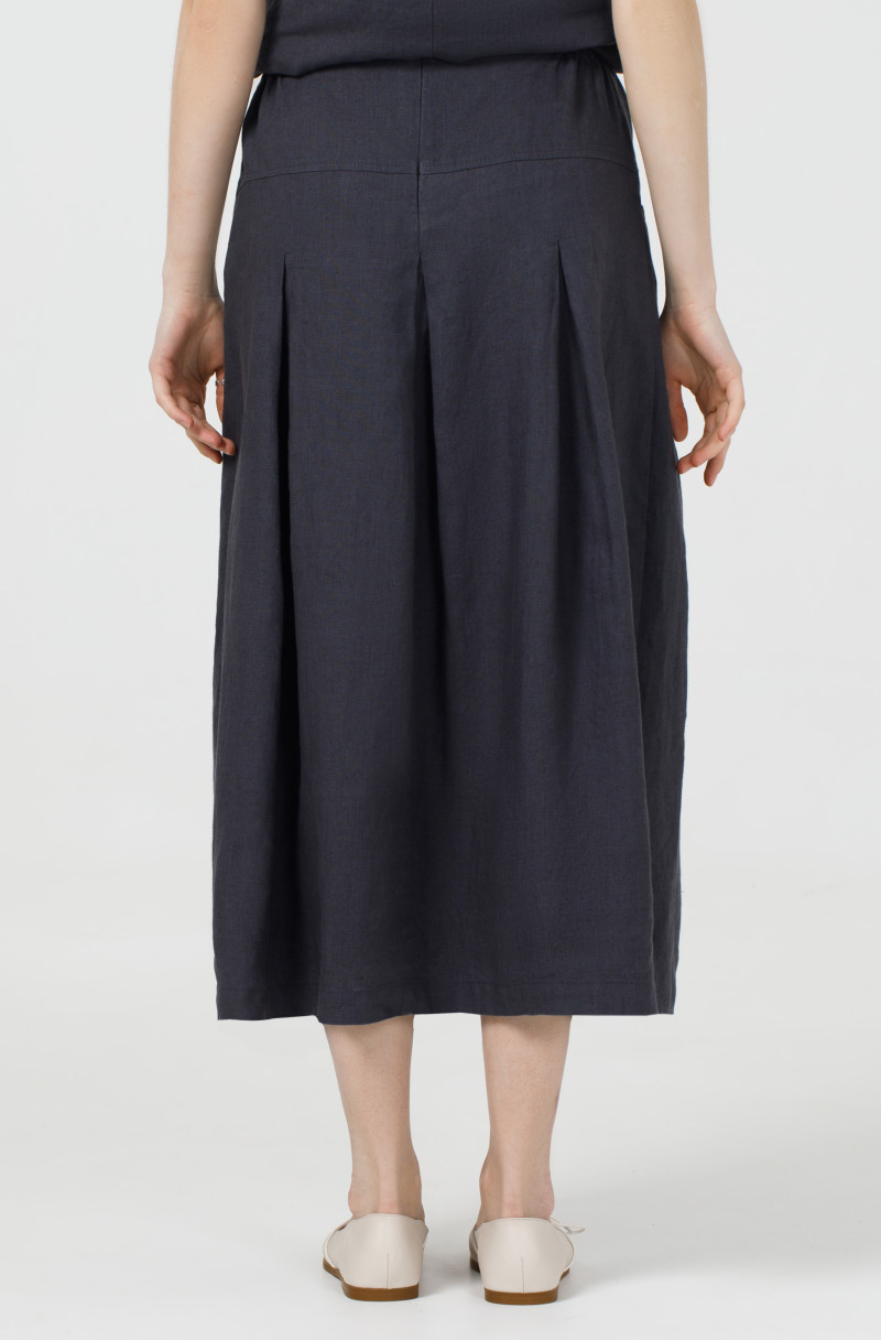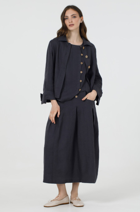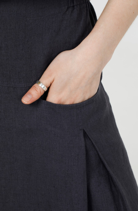 Спідниця з лляної тканини з ефектом креш. Попереду спідниці розташовані кишені, на спинці – застібка-блискавка.